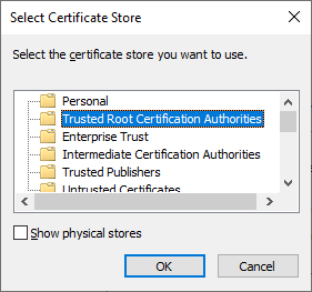 Select Trusted Root Certification Authorities (This is very important), click OK